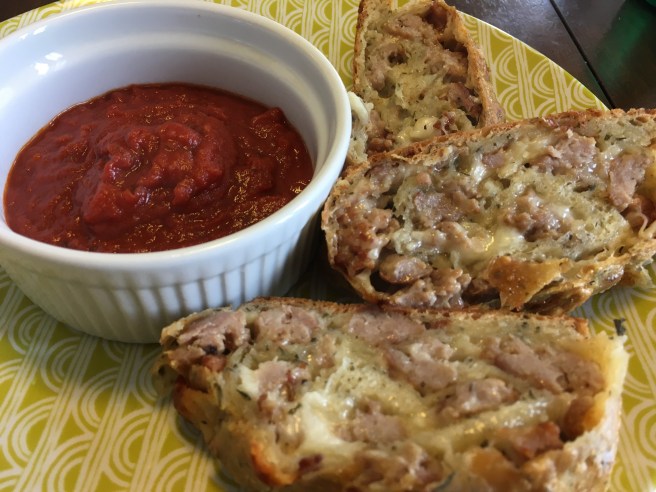 Let cool for 10-15 minutes before slicing and serving. It’s great as is or heat up some pizza sauce for dipping. Enjoy!